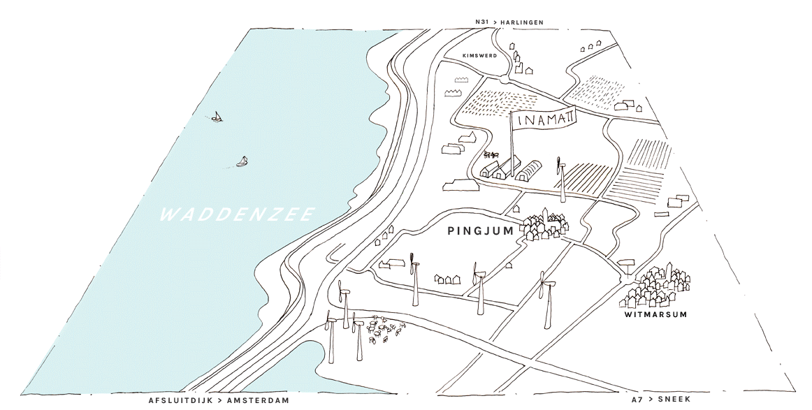 Studio INAMATT is located in the green fields of Pingjum, Friesland. From here we operate and our projects lead us to the most beautiful collaborations within The Netherlands and abroad. Drop us a line, if you are looking for a design solution or want more information on our approach and projects. Via the contact form, send us an e-mail directly or visit us in Pingjum (click map for location and route).