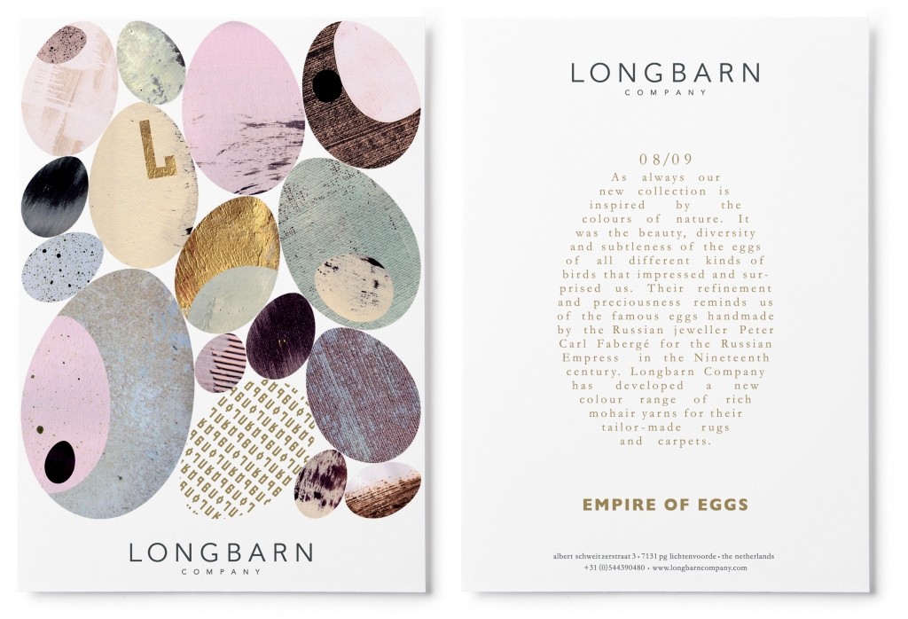 INAMATT supported the Longbarn Company in developing the concept of their identity, helping to shape their name, the concept of their visual representation, and the strategy for presentation. The photography of the textile ware was centrepiece of our attention. For several of the Longbarn collections, INAMATT has been involved in developing the rich colour and texture schemes.