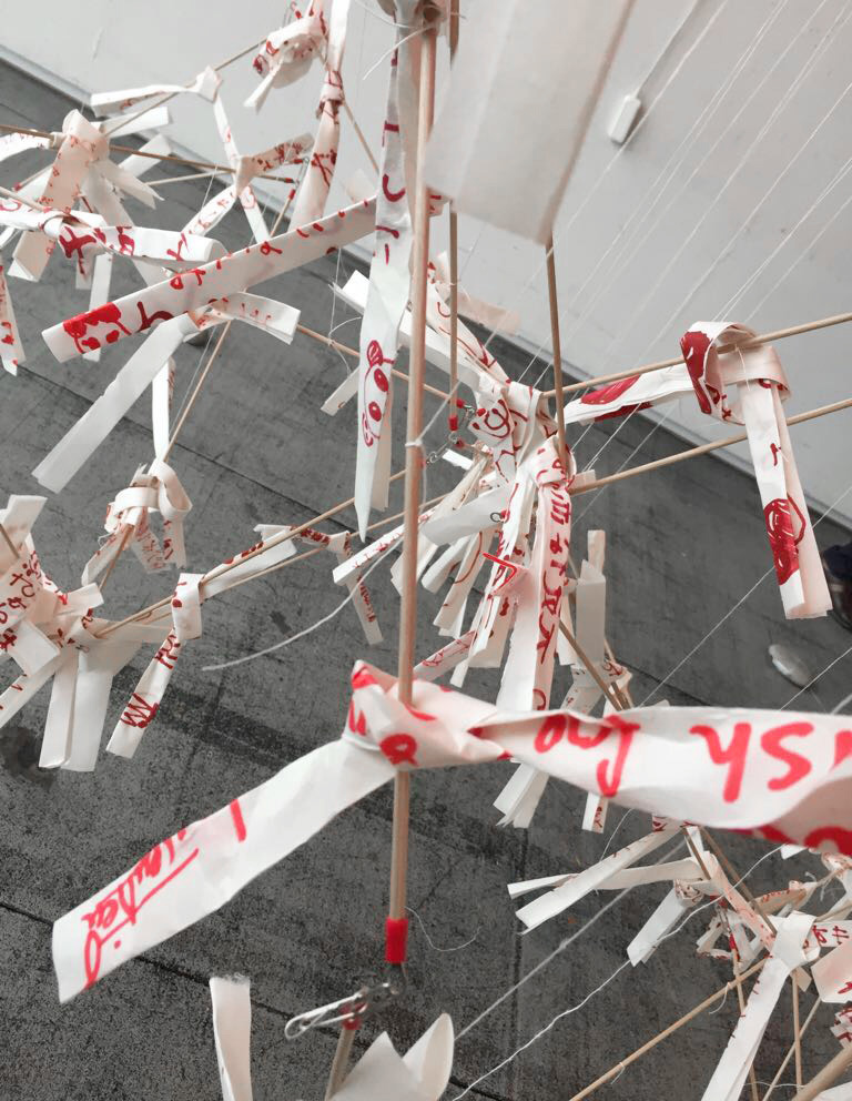 Related to the opening ceremony of the bridge, we were asked by the Nagasaki Prefectural Art Museum to organise a performance, which resulted in 'Wish Bridge', an installation of bamboo, air and wishes for the future.